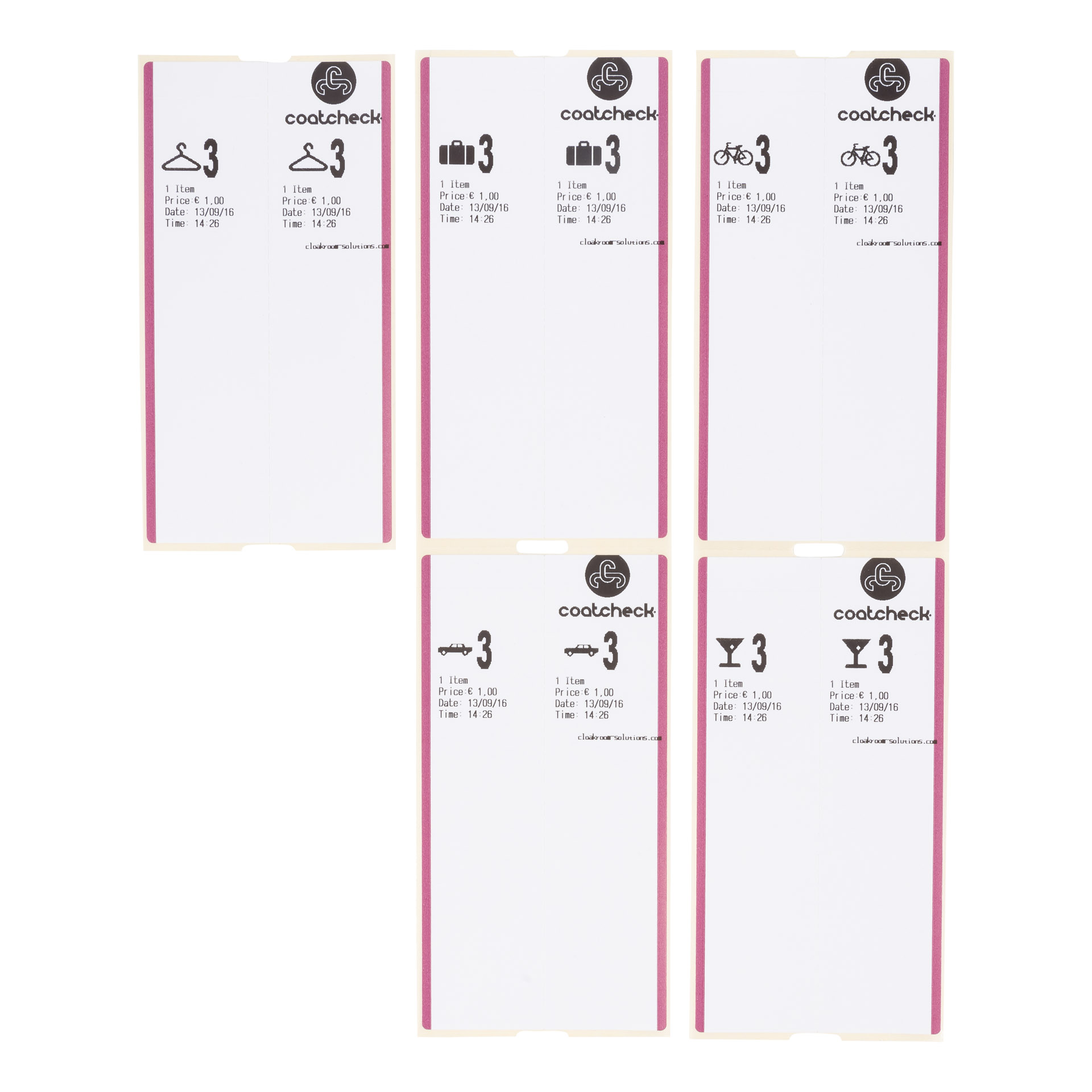 Mit diesem Ticketdrucker können Sie Ihre Garderobetickets, Eintrittskarten und Kofferanhänger ausdrucken. Bei Garderobentickets wird die eine Hälfte an einem Anhänger oder Haken befestigt, die andere Hälfte ist für Ihren Besucher. Die Kofferanhänger bestehen aus zwei Teilen: einem Teil als Quittung sowie dem anderen Teil, der um den Gepäckgriff gefaltet und verklebt wird. Sie sind selbstklebend und hinterlassen keine Kleberückstände. Eine ideale Lösung für Messen und Hotels. Darüber hinaus druckt der neue Coatcheck+ Ticketprinter auch Eintrittskarten und Konsumgutscheine. Alle Tickets können mit Ihrem eigenen Firmenlogo bedruckt werden. Am Ende eines jeden Arbeitstages / Abends gibt Ihnen der Coatcheck+ Ticketprinter über einen Z-Bericht eine komplette Umsatzübersicht.